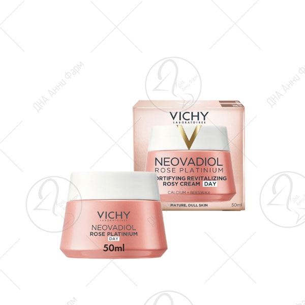 Vichy Neovadiol Rose Platinum дневна крема е специјално создадена за зрелата кожа во периодот по менопауза, кога кожата станува потенка, посува и губи цврстина и природна розова боја. Формулата е збогатена со засилувачи на цврстина, негувачки липиди и розови минерални пигменти кои веднаш даваат здрав, свеж и розов сјај.